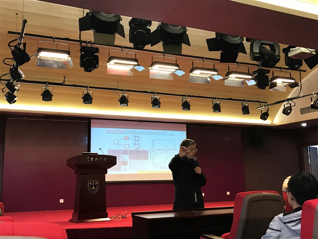 胡老师课题组目前主要从物理化学及功能材料的角度,围绕碳基及Ⅲ族氮化物等纳米/介观结构新材料的生长机理、成分与结构调控、能源转化/储存功能及其调控机制开展工作。他为同学们介绍了他们课题组所做的关于碳基纳米管的生长机理、成分与结构调控及其催化功能化研究、能源转化/储能用纳米材料的功能调控及机制研和半导体纳米线的制备、性能及器件研究等。期间,他提出并实验验证了以苯为前驱物催化生长碳纳米管的六元环生长机制,在碳纳米管生长机制这一前沿课题上作出了贡献。本次演讲中教授还介绍了许多关于碳基纳米管和材料设计能源应用方面的科技前沿,让同学们接触到功能材料的前沿课题,使同学们大开眼界,收获颇丰。