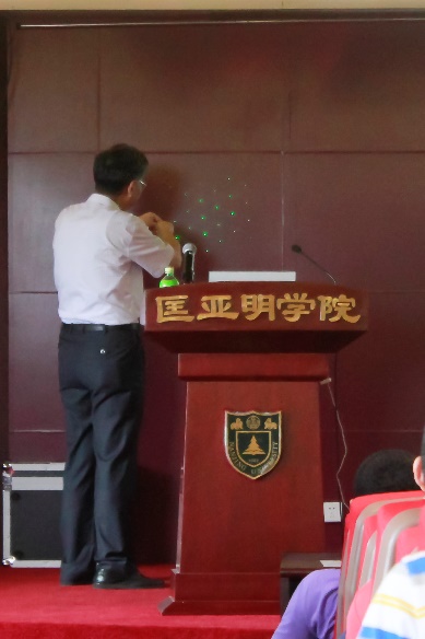 祝院士在进行二维光栅衍射的现场演示