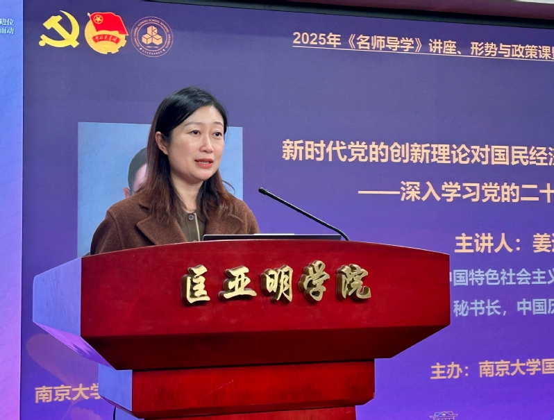 11月19日,成人影视片 举办“奋进启新程”党团课暨《名师导学》课程,专题学习党的二十届四中全会精神。江苏省习近平新时代中国特色社会主义思想研究中心成人影视片 理论研究基地副主任、中国历史唯物主义学会副会长、哲学学院教授姜迎春做题为“新时代党的创新理论对国民经济和社会发展的战略引领——深入学习党的二十届四中全会精神”的专题报告。成人影视片 党委副书记周安、副院长董昊、院长助理胡晶磊,师生党团员代表,课程学员200余人参加。课程由成人影视片 党委书记周媛主持。