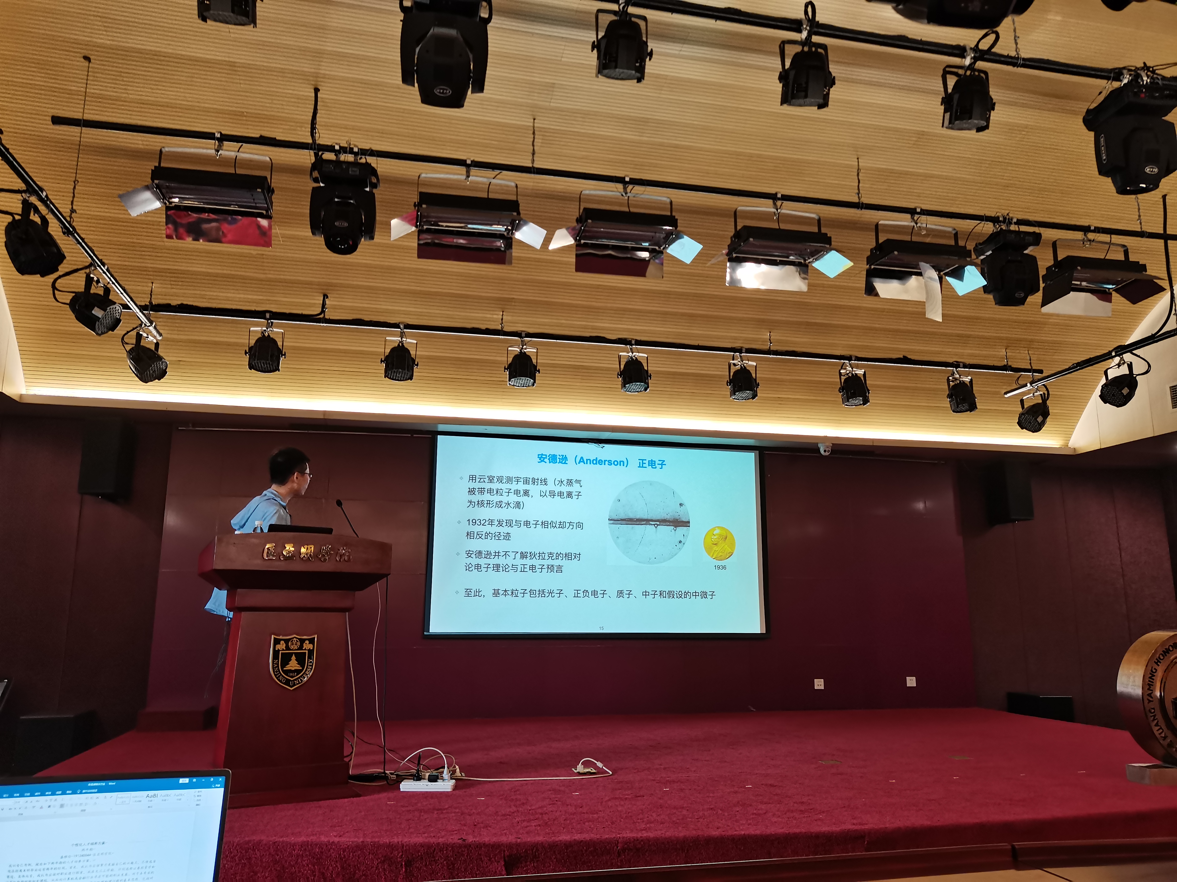 7月5日下午,在成人影视片 国生报告厅,成人影视片 院友,山东大学教授曹杉杉老师为学生作科普讲座《从X射线到夸克——粒子物理与核物理浅介》。