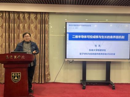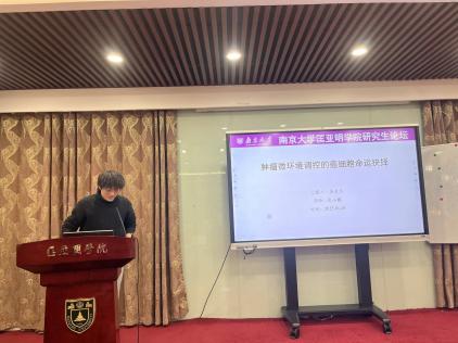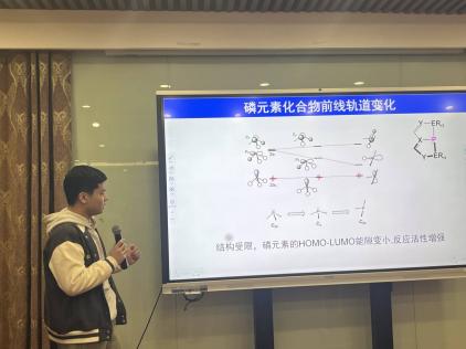 论坛分为学术报告和海报讨论两个环节。在学术报告环节,首先由本次论坛的特邀嘉宾东南大学马亮教授与中国药科大学刘金峰副教授开展学术报告。马亮教授分享了他的团队在二维半导体可控成核与生长的表界面制探究的成果,刘金峰副教授介绍了他的团队对于水溶液的高精度机器学习势能面的最新进展。随后,学院各课题组的七位研究生同学们依次登台,展示了自己近期在科研领域的成果。高星杰同学通过建立生物网络模型,探究了免疫微环境调控对于肿瘤细胞命运抉择的影响;赵苗苗同学介绍了一种基于生成式模型的增强采样方法DA2-VAE;张橙同学在结构受限磷化合物活性算符的理论研究中取得较大进展;于文洁同学探究了银和银基近表面合金电催化二氧化氮选择性还原生成羟胺的微观机制;李俊艾同学报告了在活性膜的分子动力学模拟工作中取得的成果;朱颖同学在脂质过氧化物对于GPCR功能的影响研究中取得阶段性的进展;孔铁霖同学汇报了铁电极化忆阻器的含时电流模拟工作的研究。精彩的学术报告引发了师生的热烈讨论,拓宽了同学们的学术视野。