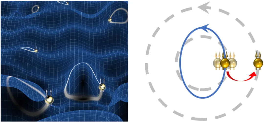 图1:(左)量子度规描述运行轨道的形状。(右)轨道形变产生最低能量长波激发。