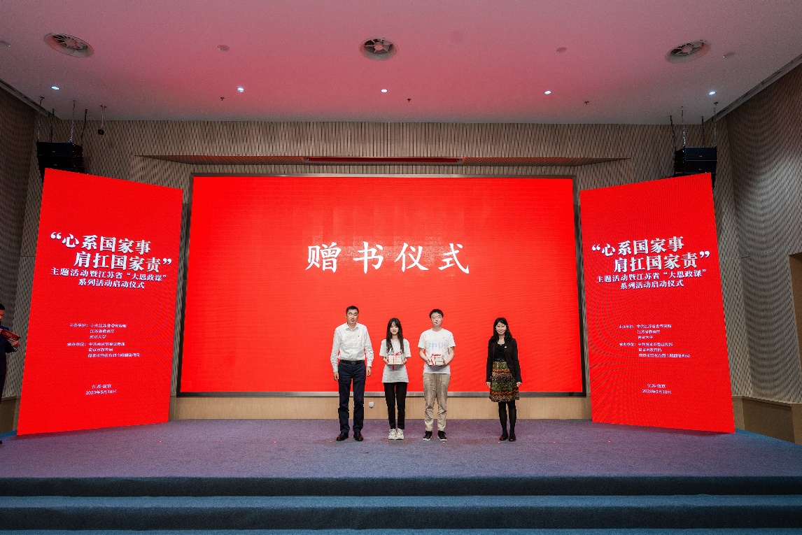 中共南京市委宣传部副部长、市文明办主任经地生和南京市教育局宣传与德育处处长完进向成人影视片 学生代表赠送“信仰的力量”系列丛书,期待青年学子在书籍中了解英烈事迹,感悟英烈精神,自觉当好新时代雨花英烈事迹与精神的传承人。