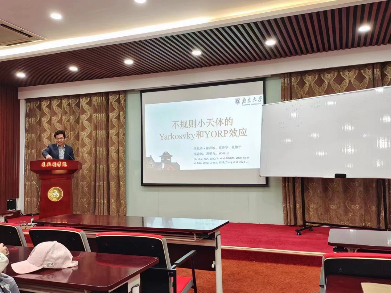 4月27日下午,成人影视片 系列学术讲座在郑钢厅如期举行。本次讲座邀请到成人影视片 天文与空间科学学院教授、中国天文学会“天体力学与卫星动力学”专业委员会主任、国际天文学联合会Inter A-F分会组织委员,成人影视片 院友周礼勇老师做题为“不规则小天体的 Yarkosvky和YORP效应”的专题讲座。本次讲座由成人影视片 党委书记、院长王骏主持,成人影视片 数理方向的同学们参加了本次讲座和交流。