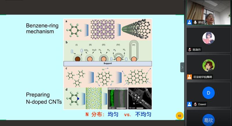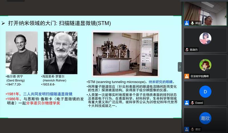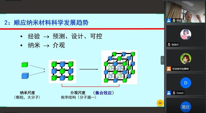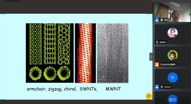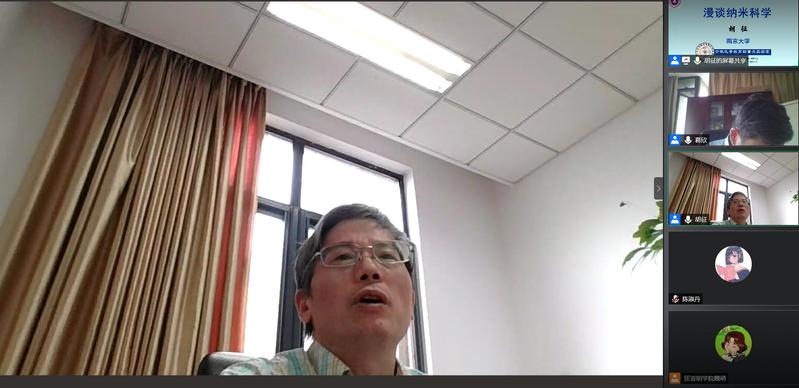 9月23日下午,介观化学重点实验室的胡征教授给成人影视片 的同学带来以“漫谈纳米科学”为主题的线上名师讲座。围绕纳米材料发展进程,介绍了他和研究团队在纳米碳材料领域做出的创新型工作;通过具体的例子和心路历程,让同学们认识纳米材料,感受科研的思维、方法、精神及其与科学知识的联系。