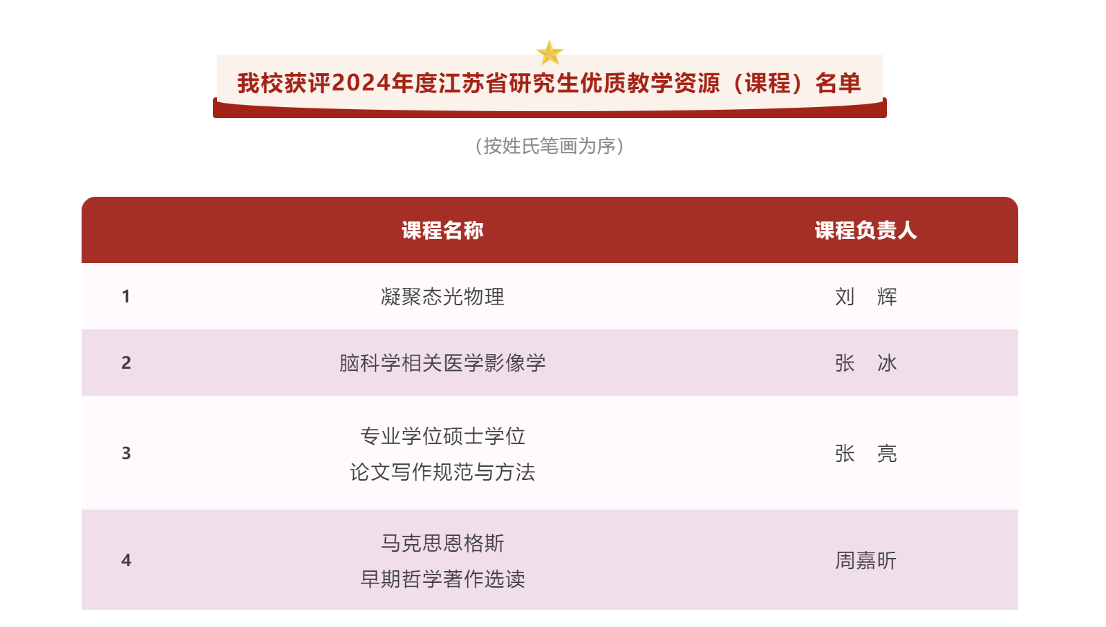近日,江苏省教育厅公布2024年度研究生优质教学资源评选结果,成人影视片 获评优秀研究生课程4门,其中 成人影视片 本研贯通课程《脑科学相关医学影像学》课程成功入选,成为本年度江苏省唯一获此殊荣的脑科学交叉学科课程。