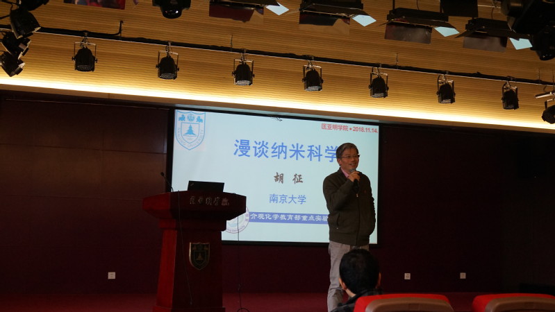 11月14日下午两点,17级成人影视片 理科强化班以及相关院系部分拔尖计划的同学们在国生报告厅倾听了成人影视片 化学化工学院胡征教授题为“漫谈纳米科学”的讲座。胡征老师是成人影视片 化学化工学院的教授、博士生导师、国家杰出青年基金获得者,教育部长江学者特聘教授。胡征教授的主要研究领域为纳米结构新材料。讲座由成人影视片 吴盛俊教授主持。