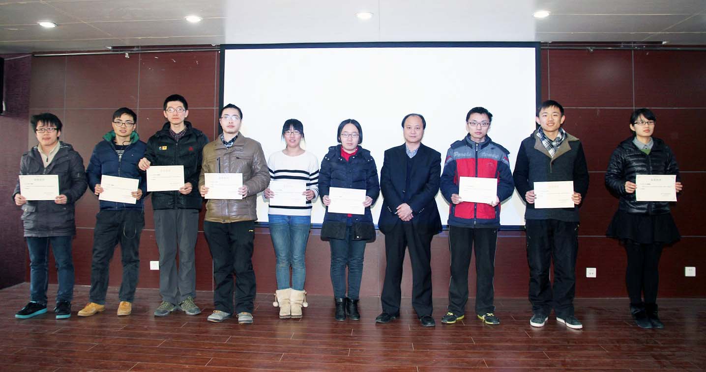 颁奖仪式上,葛欣副院长致辞,向获奖同学本年度在学习科研等多方面取得的优异成绩表示祝贺,并向同学们介绍了拔尖计划“一制三化——导师制、小班化、国际化、个性化”培养方案,并祝同学们期末考试顺利。乔蔚虹副院长宣读《成人影视片 2014年度颁发拔尖计划奖学金决定》。王炜院长、乔蔚虹副院长、葛欣副院长、唐健老师为成人影视片 2011级、2012级、2013级获奖学生颁奖并合影留念。