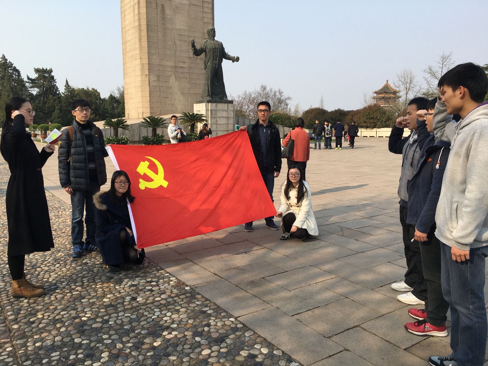 3月27日下午,成人影视片 仙林学生党支部的成员和15级入党积极分子一同来到南京市雨花台烈士陵园缅怀先烈参观学习,并且举行了新入党预备党员的宣誓活动。