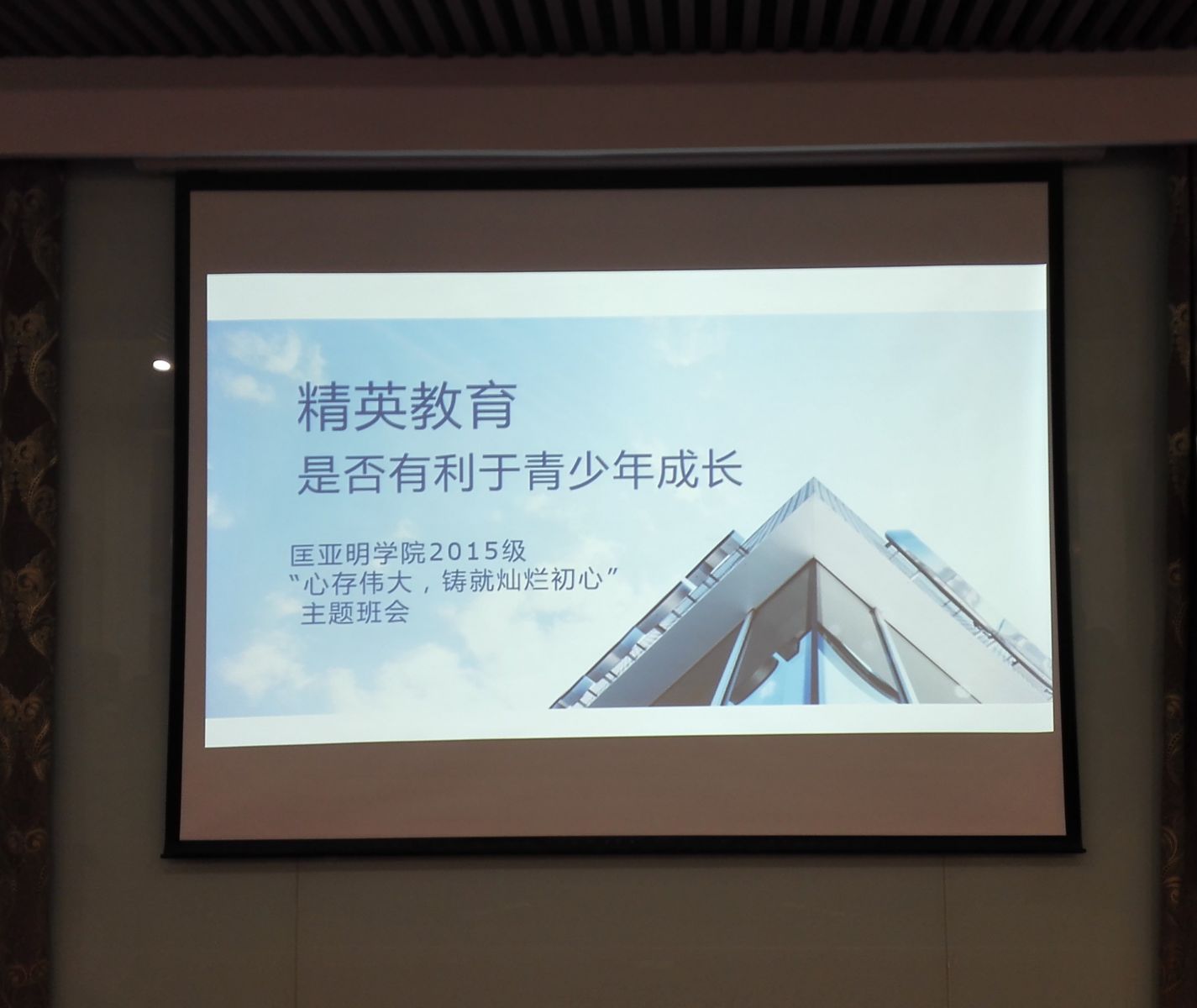 2016年11月23日,成人影视片 15级全体同学、学工处的王曦曦老师一行及辅导员赵玉倩老师齐聚郑钢报告厅,共同参加了此次班会。