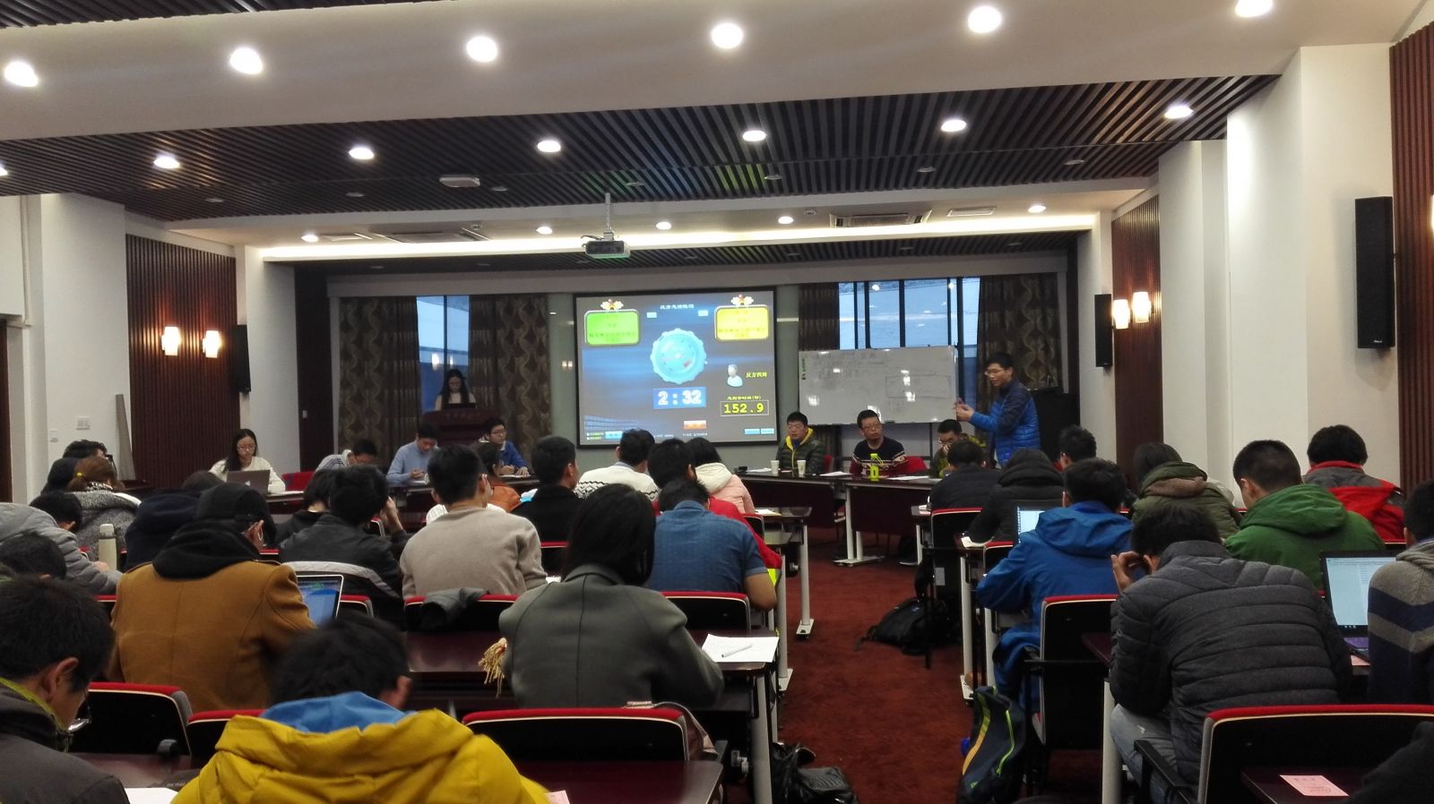 接下来,双方二辩朱泓尧、李晨阳及双方三辩徐昕哲、佘忞祎进行两轮的质询与驳论。双方斗智斗勇,妙语连珠,各有斩获。众多权威数据和资料被各位辩手信手拈来,像“北大猪肉哥”“精英教育不等于贵族教育”等言论为同学们津津乐道。辩论中,虽然反方在时间控制与辩手衔接等综合表现方面略胜一筹,但是在自由辩论环节,正方倪至涵独挑大梁,以一敌三,将整场辩论推向高潮。