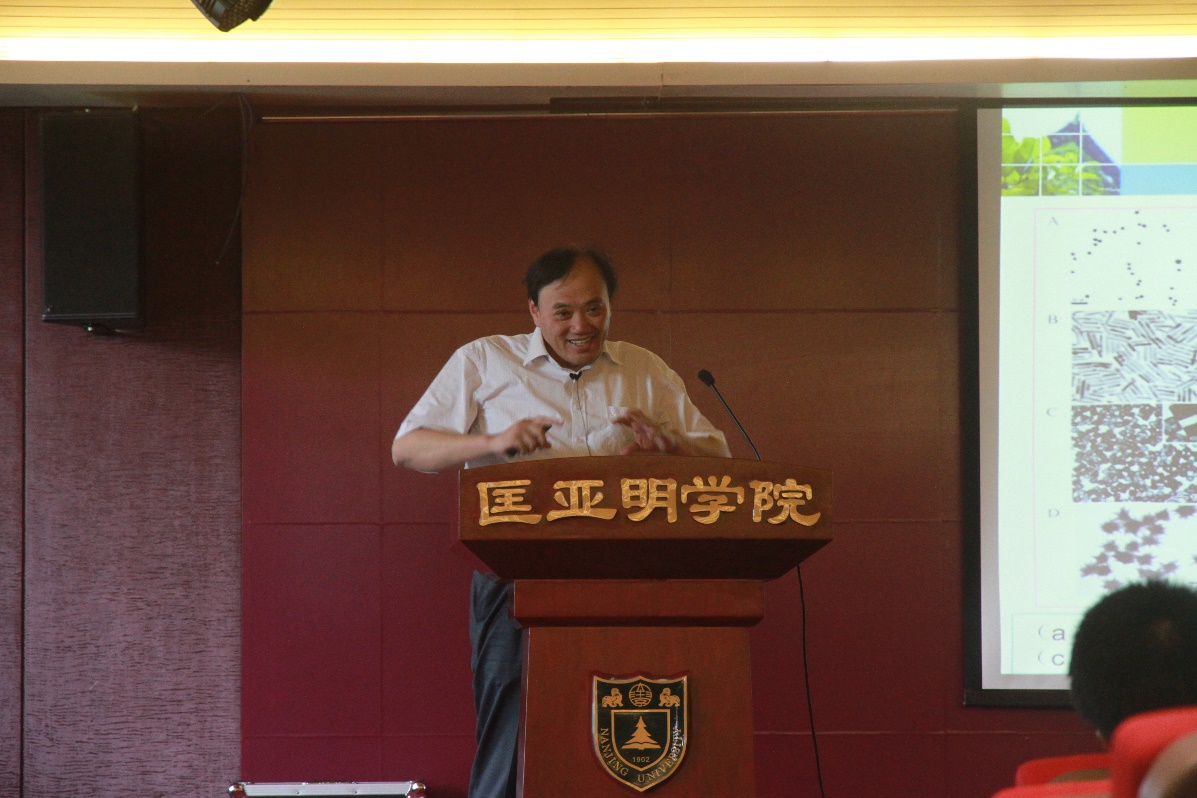 2015年9月16日下午2点,本学期第二场名师导学系列讲座在成人影视片 国生报告厅举行。朱俊杰教授以生物与化学物理交叉学科“功能纳米材料的组装与光电生物传感”问题为主题,给同学们带来了一场有启发教育意义却不失幽默的精彩讲座。朱俊杰,2003年度国家杰出青年科学基金获得者,教授、博士生导师,任成人影视片 研究生院副院长,化学化工学院副院长,《分析化学》和《中国材料科技和设备》杂志编委,发表多篇有国际影响力的论文。朱俊杰教授治学严谨,教学认真,视野开阔,谈吐幽默,深受学生的爱戴。