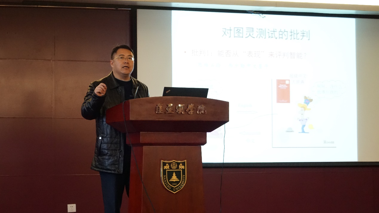 讲座伊始,高教授结合自己博士答辩时的经历,提出问题:人工智能的用途。 随后他又提到,近些年来,人工智能大放异彩,从Deep Blue略输Kasparov,到Deeper Blue反败为胜,又有 CCTV的机器作诗,Alpha Go棋艺大败李世石和柯杰,追溯人工智能的根源,高阳老师带同学们回顾上世纪50年代,回到大师图灵的时代。在曼切斯特一号制作完成后,图灵并不满意其性能表现。经过思索,他用《计算机与智能》一文,留下了自己的详细想法。其中包括了最重要的一个内容——图灵测试。人能否判断一个回答来自人还是计算机,并以此作为人工智能的判断依据。但图灵规则受到了挑战:“希尔顿中文规则”——一个英文使用者,可以用英汉字典回答问题提问,但不能说明其掌握中文。因而,计算机智能来自算法,计算机只是执行算法,不能称之为智能。