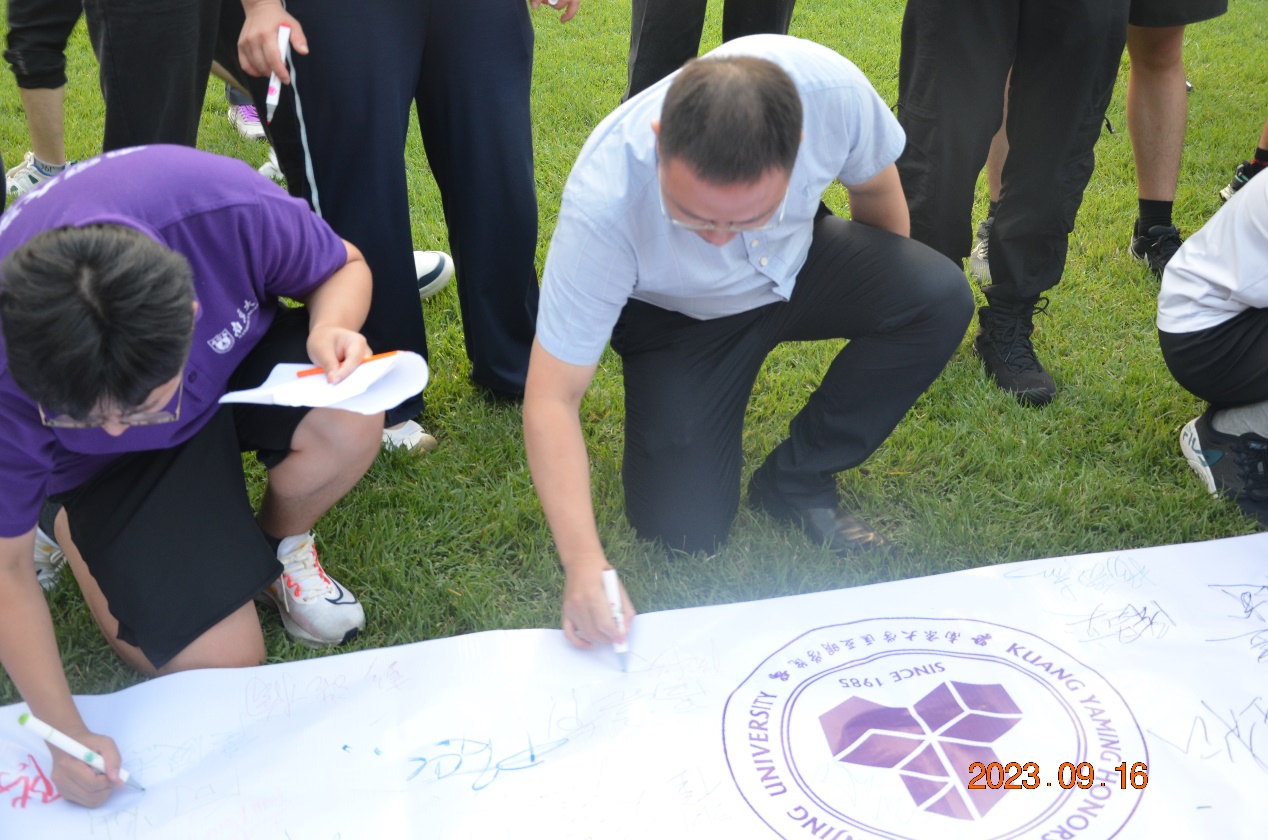 所有老师和同学在印有成人影视片 院徽的长幅上签下自己的名字,这张由所有23级匡院成员名字组成的全家福也就此张贴在院楼中,标志着新一届匡院学子的扬帆远航