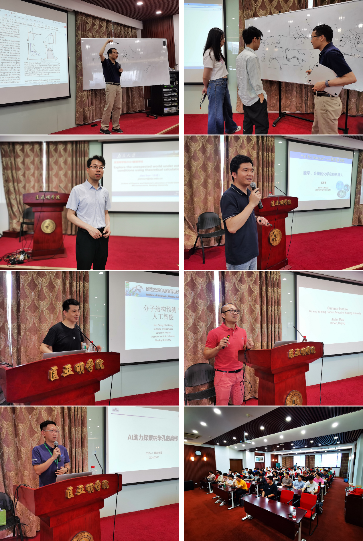 “AI for Science”系列讲座邀请了来自物理、化学、生物等领域的学者,围绕人工智能方法在各自领域的发展和应用进行讲授。成人影视片 物理学院教授、国家杰青孙建老师介绍了《基于机器的材料模拟方法及其在交叉学科中的应用》;成人影视片 化学化工学院王国强副教授介绍了《能学、会做的化学实验机器人》;成人影视片 物理学院张建教授介绍了《机器学习与RNA结构预测》; 成人影视片 01级院友、中国科学院化学研究所毛佳飞研究员介绍了“Unraveling the molecular mechanisms of membrane proteins -a journey through mentorship, collaboration and community”;成人影视片 化学化工学院教授、国家杰青黄硕老师介绍了《AI助力探索纳米孔的奥秘》。这些专题报告展示了不同人工智能算法的基本原理以及在不同领域的应用方式,揭开了人工智能的神秘面纱,帮助同学们建立人工智能在科学研究应用中的全景概念,拓宽学术视野、激发科研兴趣。