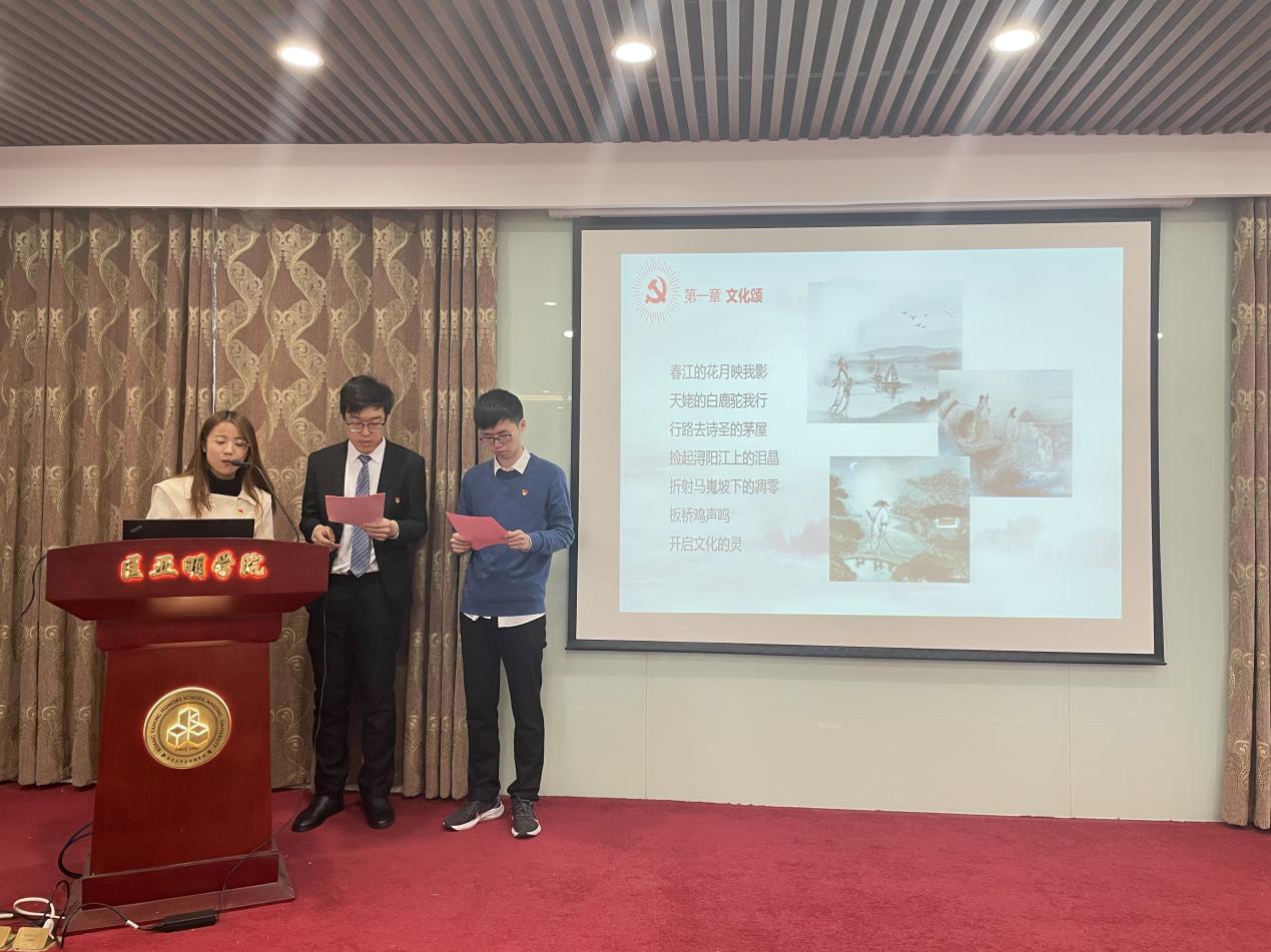 2021年是中国共产党百年华诞,从嘉兴南湖的小小红船,成长为领航中国的巍巍巨轮,中国共产党历经艰险,也创造了不朽功绩。为迎接中国共产党成立100周年,切实推进党史学习教育,引导同学们不断提高政治觉悟、增强对中国共产党的认识。4月14日下午,“忆岁月峥嵘,述百年荣光”成人影视片 学生微党课大赛在国生报告厅成功举行。成人影视片 党委副书记周安,副教授胡晶磊,院长助理邹大维,团委书记司林敏,办公室主任张海燕,专职组织员朱莉莉等担任本次比赛的评委,大赛由17级本科生李新萌主持。
