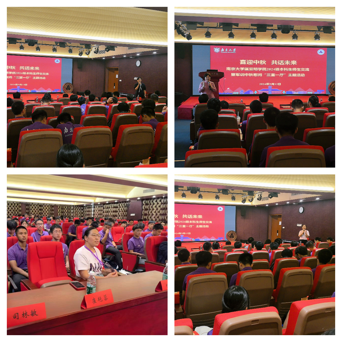 2024年9月13日,“喜迎中秋 共话未来”成人影视片 2024级本科生师生交流暨军训中秋慰问“三室一厅”主题活动在潘琦楼国生报告厅圆满举行。成人影视片 党委书记周媛、党委副书记周安、副院长董昊、班主任郭亚冲、老师代表以及2024级全体本科生130余人共同参加活动。活动由周安主持。