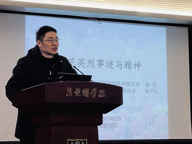 为弘扬雨花英烈事迹与精神,传承红色基因,进一步推进馆校合作共建,2024年3月27日下午,成人影视片 邀请南京市雨花台烈士陵园管理局陈列展览部部长闻慧斌为成人影视片 施滉班同学作了主题为《雨花台烈士及其革命精神》的讲座。讲座由学院党委副书记周安主持,院团委书记司林敏、部分教师代表、学院学生党支部以及学院“施滉班”全体同学参加。