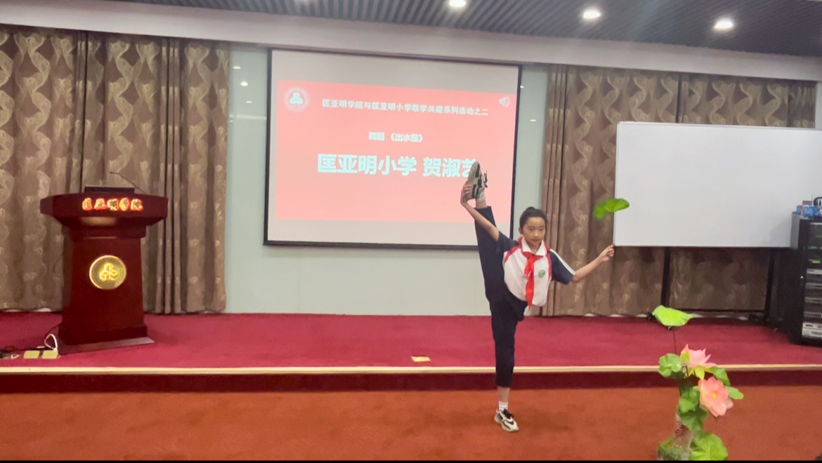 活动中,与会同学们给大家带来精彩的文艺表演。匡亚明小学贺淑艺同学表演了舞蹈《出水莲》,婀娜多姿,如出水芙蓉,赢得阵阵掌声。成人影视片 2021级林佳雄同学展示了跳花绳,技术娴熟,身手矫健,展现力量与美的结合,获得连连喝彩。
