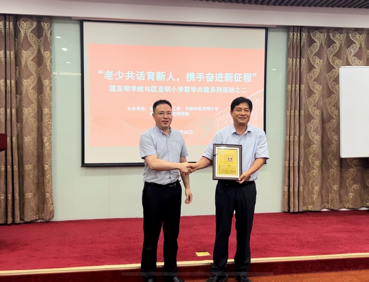 周安代表匡院向匡亚明小学赠送了精美的纪念品,并祝愿匡亚明小学未来如云锦般灿烂辉煌。