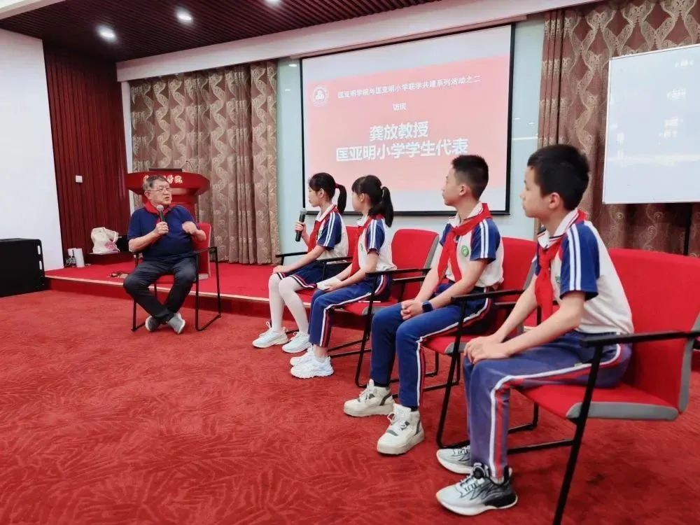 接着,龚放教授与匡亚明小学学生代表亲切交谈。“龚爷爷,您在学习生涯中遇到过挫折和失败吗?您是如何面对的?”“龚爷爷,您一家三代有四人是南大毕业,您是如何教育自己的孩子使他变得优秀的?”“龚爷爷,我们少先队员最应该培养什么样的能力?”同学们问了许多有意义的问题,如怎样克服困难与挫折等。面对小学生们一个个问题,龚教授逐一耐心解答。他寄语同学们学习要有规划有方法,要善于提问思考,重视思维的发展,有探究意识。同学们认真聆听,收获良多。