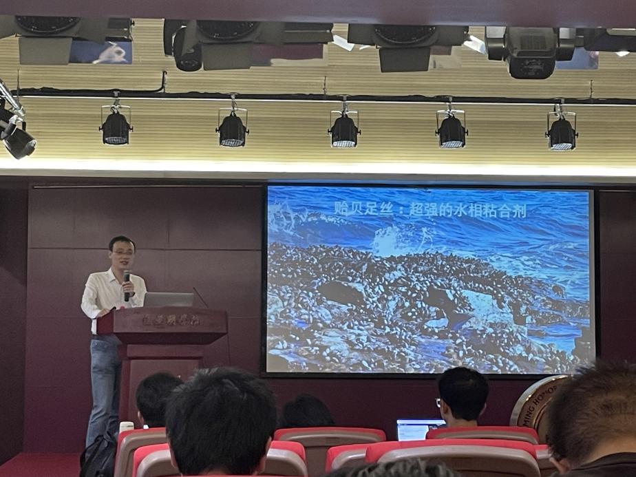 基于上述的背景介绍,曹毅教授进一步讲述了生物力学与疾病的密切关系。一如疤痕。疤痕是人体重要的保护机制,保护伤口不容易被外界揭开。再如血管支架,它能使血管一直处于张开状态,防止血液中的脂肪之类的物质滞留而挤压血管导致血管疾病。同时曹毅教授还介绍了生物力学前沿研究,如在癌症生物力学研究中发现,肿瘤会压迫周围组织,使癌细胞发生组织迁移,其中就隐含了力学的选择性。自然界中也蕴含着生物力学,比如蜘蛛丝是比钢铁还强的蛋白质材料;贻贝的足丝是超强的水相粘合剂。这使我们大受震撼。
