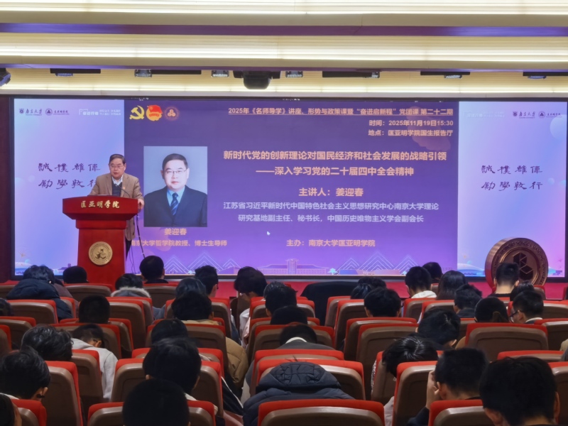 11月19日,成人影视片 举办“奋进启新程”党团课暨《名师导学》课程,专题学习党的二十届四中全会精神。江苏省习近平新时代中国特色社会主义思想研究中心成人影视片 理论研究基地副主任、中国历史唯物主义学会副会长、哲学学院教授姜迎春做题为“新时代党的创新理论对国民经济和社会发展的战略引领——深入学习党的二十届四中全会精神”的专题报告。成人影视片 党委副书记周安、副院长董昊、院长助理胡晶磊,师生党团员代表,课程学员200余人参加。课程由成人影视片 党委书记周媛主持。