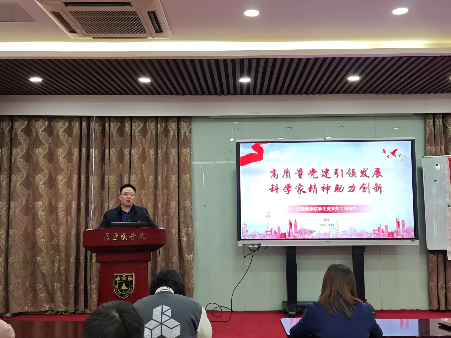最后,周媛在总结讲话中以'有声有色、有点有面、有型有效'六个“有”充分肯定本次会议成效。她指出学生党支部要以此次会议为新起点,着力构建'三聚焦三提升'工作机制:聚焦理论武装提升政治引领力,聚焦制度建设提升组织战斗力,聚焦品牌创建提升发展推动力,为学校'奋进行动'实施和基础学科拔尖人才培养提供坚强组织保障。