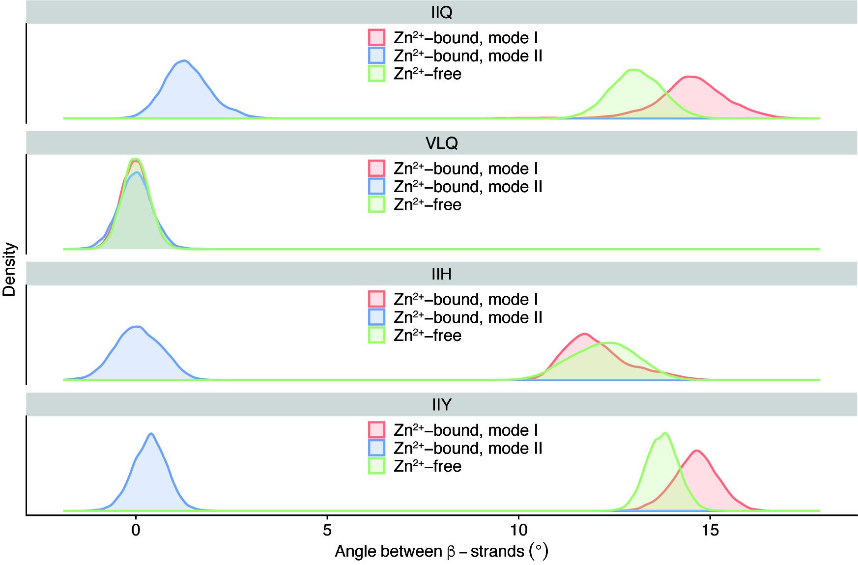 后续的分子动力学模拟在微观层面深入探讨了不同序列多肽展现的自组装形态差异(图4),详细阐述了锌离子的结合与配位模式如何调控自组装形貌的分子机制,从而精确地在序列、结构与功能活性之间建立了联系。此外,研究人员利用固态核磁共振技术对自组装纤维结构中组氨酸的取向进行了详细表征,发现不同序列的配位模式及其比例存在显著差异。特别是在本工作中表现出最高催化活性的IIQ序列,采用两种不同的催化活性中心,显示了该体系的结构多样性和机制复杂性。