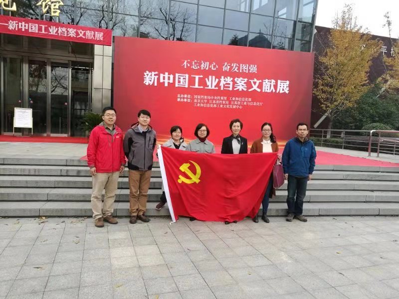 11月12日下午,成人影视片 党总支书记乔蔚虹带领成人影视片 部分教工党员参观在校展览馆开幕的“新中国工业档案文献展”南京巡展。