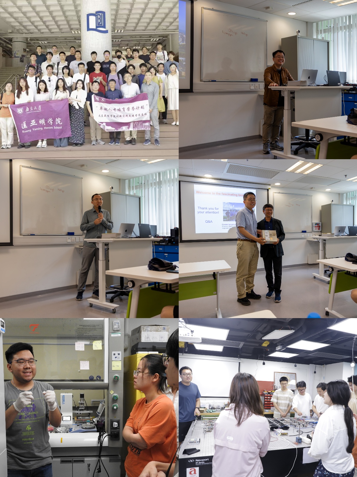 5月24日,成人影视片 师生一行赴香港科技大学交流访问。上午抵达时,师生们受到1982级校友邬振国教授、1985级院友郁建珍教授等多位南大校友的热情迎接,亲切问候令师生倍感温暖。交流会上,邬振国、郁建珍等教授代表港科大表示欢迎,并系统介绍了学校的科研布局与办学理念。随后,李桂君、张琼等多位校友分享了各自学科的前沿进展与研究重点。座谈中,校友们深情表达了对母校成人影视片 培养的感激之情,认为母校为其科研之路奠定了坚实基础,并寄语同学们珍惜时光、拓展视野、投身实践、勇于挑战。会前,师生们参观了李桂君教授所在的集成系统与设计学部实验室。2015级院友徐扬博士介绍了实验室在系统工程与跨学科设计方面的特色研究,并通过案例展示了多学科理论解决实际问题的创新方法,深化了师生对跨学科研究的认识。学院带队老师代表现场向徐扬博士颁发了捐赠证书,感谢他对学院教育事业的支持。午餐期间,教授们与同学们深入交流,气氛轻松热烈。下午,师生分组参访了生命科学系、化学系及空气质量研究站点,并在邬振国教授引导下,近距离体验了冷冻电镜等先进科研平台的操作环境。此次访问生动展现了两校深厚的科研教育联结,进一步增进了校际情谊,为匡院学子拓宽视野、激发科研兴趣提供了宝贵助力,师生收获丰硕。