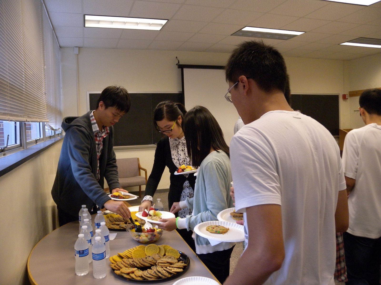 “下午茶”是杜克大学最受欢迎的活动之一。在轻松的氛围中,理学院的教授们与同学们亲切交谈。从来到美国的感受到某一领域的发展前景,教授们不仅关心同学们的生活,更极有耐心地对于同学们在学术上的困惑一一指点,让大家感觉很亲切也很感动。不仅如此,同学们还在此期间得以与来自数学系,物理系和化学系的同学们聊天。同龄人在一起总有聊不完的话题。通过与这些来自美国本地,中国,日本,印度等国家的学生的结识与交谈,大家的眼界开阔了很多,也很骄傲能够向他们展示中国优秀的传统文化和中国人民的热情友善。