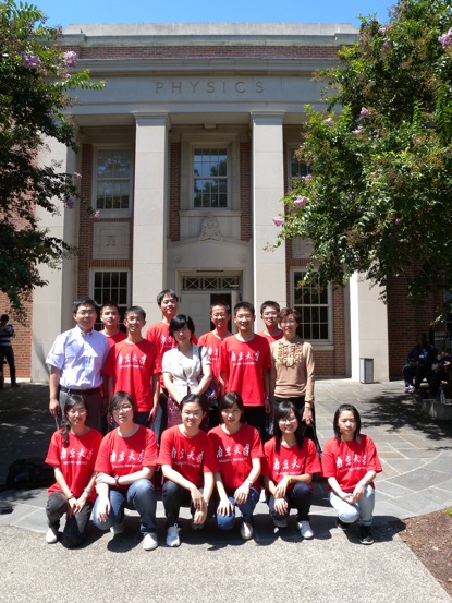 杜克大学物理系系主任高海燕教授与同学们在物理楼前合影