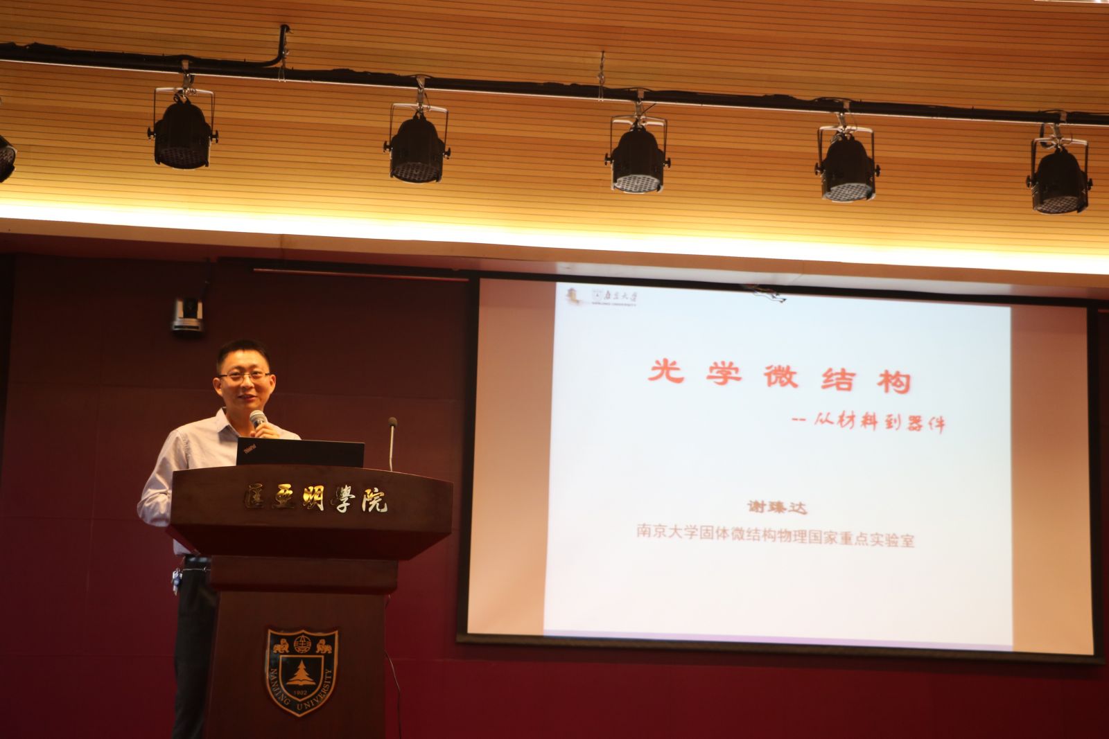 在2016暑期学校期间,来自成人影视片 固体微结构物理国家重点实验室的谢臻达教授在潘琦楼C405国生报告厅为同学们介绍了有关光学微结构的前沿知识。谢教授的讲座引人入胜,赢得同学们的阵阵掌声。