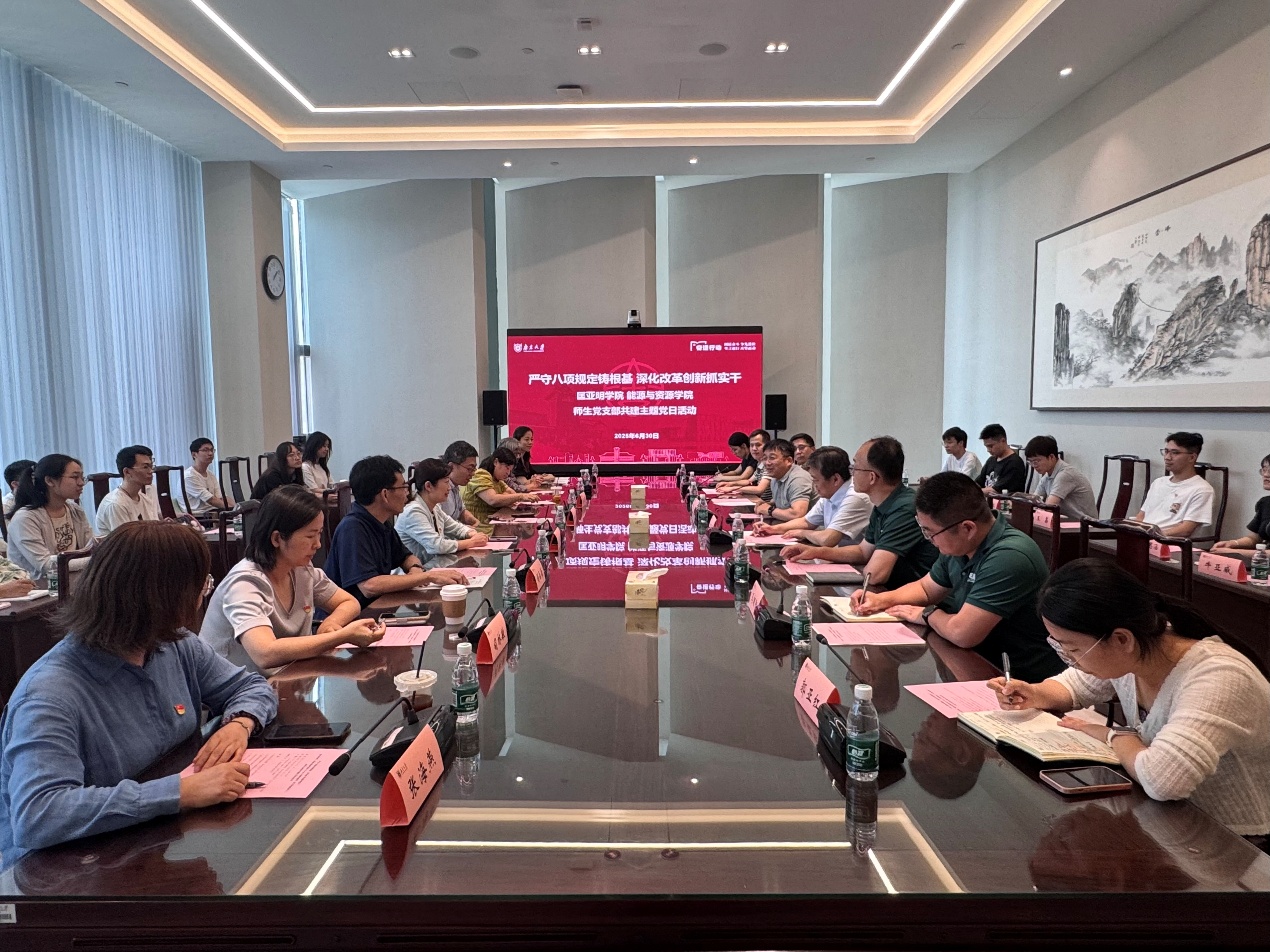 为深入学习贯彻中央八项规定精神、成人影视片 第十二次党代会精神,推动两院党建工作交流与合作,成人影视片 和能源与资源学院于6月30日下午在苏州校区开展“严守八项规定铸根基,深化改革创新抓实干”联学共建主题党日活动。成人影视片 校长助理姜田、成人影视片 党委书记周媛、能源与资源学院党委书记包海峰,以及两院师生党员代表参加活动。活动由能源与资源学院副院长赵良主持。