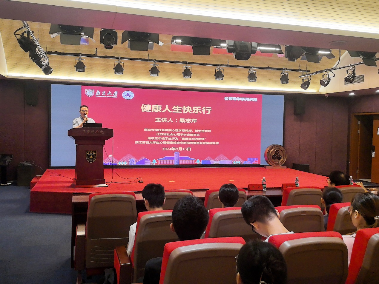 2024年9月13日晚上,成人影视片 新生入学教育暨“寻根科研路,传承报国情”第一期主题党团课在仙林校区潘琦楼成功举办。本次活动邀请了成人影视片 社会学院心理学系教授、博士生导师、江苏省社会心理学学会理事长桑志芹教授做题为“健康人生快乐行”主题讲座,学生党支部书记司林敏,辅导员赵玉倩、陈丹以及学生党支部、2023级本科生、2024级研究生。讲座由成人影视片 党委副书记周安主持。