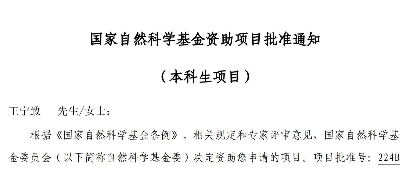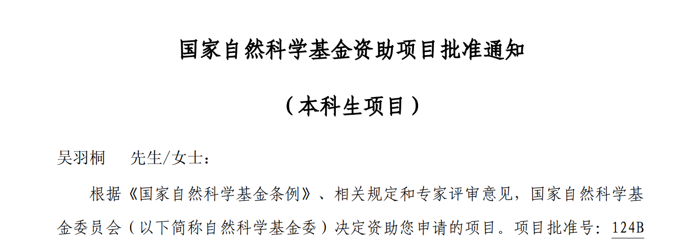 两名本科生获批2024年国家自然科学基金青年学生项目