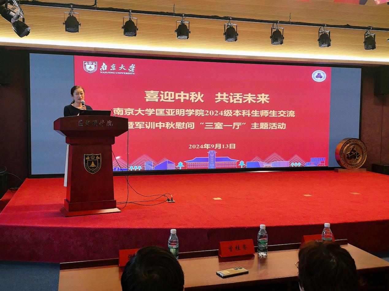 2024年9月13日,“喜迎中秋 共话未来”成人影视片 2024级本科生师生交流暨军训中秋慰问“三室一厅”主题活动在潘琦楼国生报告厅圆满举行。成人影视片 党委书记周媛、党委副书记周安、副院长董昊、班主任郭亚冲、老师代表以及2024级全体本科生130余人共同参加活动。活动由周安主持。