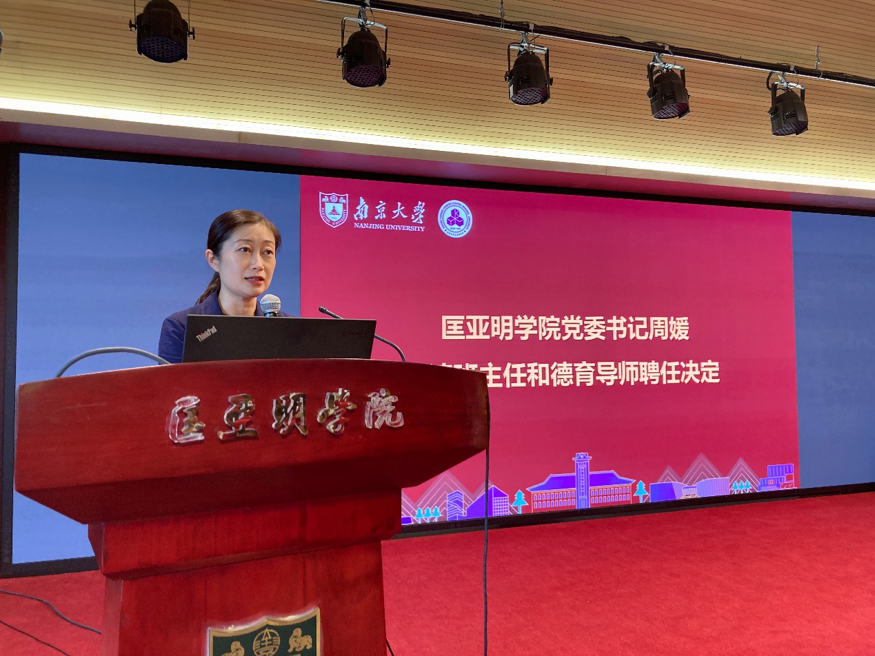 周媛宣读了《关于聘任成人影视片 2024-2025年本科生班主任、研究生德育导师的通知》。她指出,为深入贯彻落实学校“奋进在一线”育人队伍走进“三室一厅”专项工作的要求,学院进一步融合育人力量,加强班主任、德育导师的工作,全面推动育人力量下沉到学生身边,发挥教师在知识传授、价值引领等方面的育人作用。她向老师们表示敬意,也希望同学们用好大理科育人平台,向师长主动求教,健康生活、快乐成长。